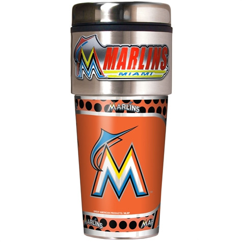 Miami Marlins 16oz Travel Tumbler with Metallic Wrap Logo