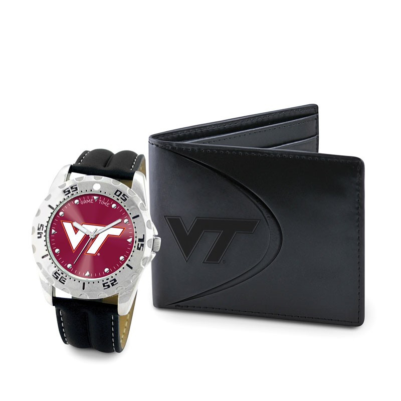 Virginia Tech Hokies NCAA Mens Leather Watch and Wallet Gift Set