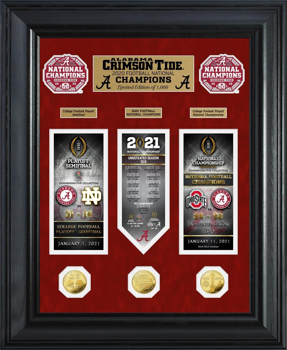 Alabama Crimson Tide 2020/21 Football National Champions Deluxe 3pc Gold Coin and 3pc Ticket Road to The Championship Photo Mint LE 1,000