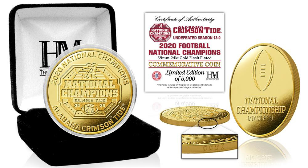 Alabama Crimson Tide 2020/21 Football National Champions Gold Mint Coin LE 5,000