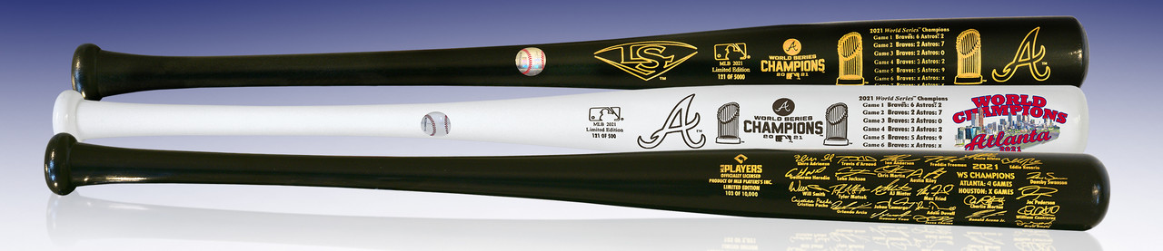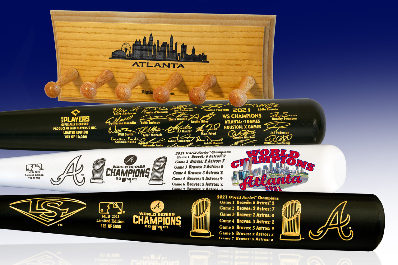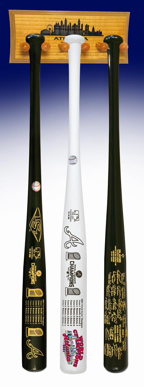 Atlanta Braves 2021 MLB World Series Champions 2-Bat Set w/Baseball Bat Rack LE 10,000