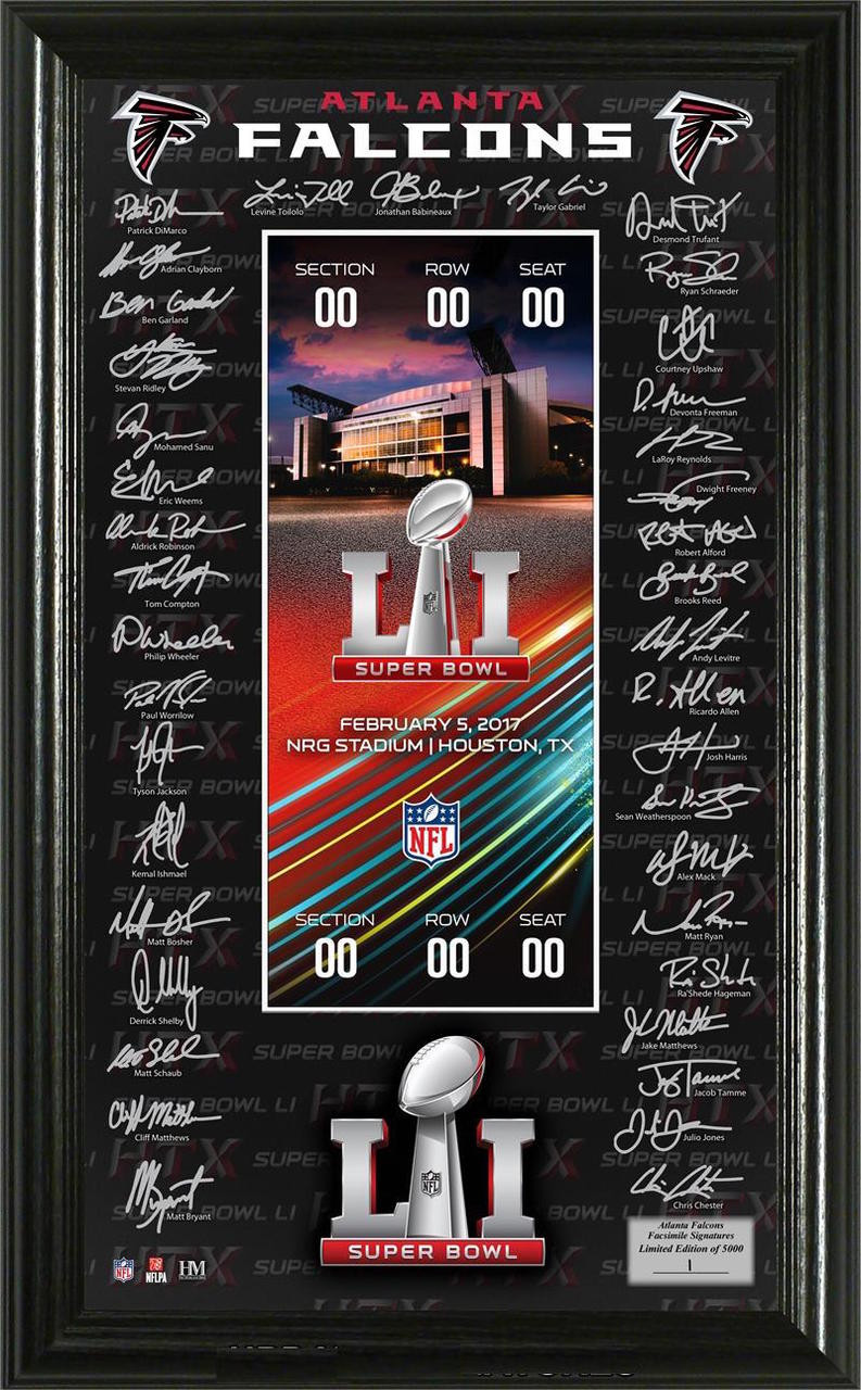 Atlanta Falcons Super Bowl LI Signature Ticket Framed LE 5000