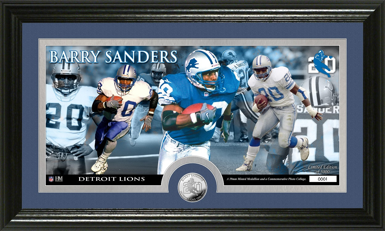Barry Sanders Minted Coin Panoramic Photo Mint
