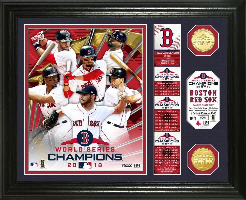 Boston Red Sox 2018 World Series Champions 2pc Gold Coin Banner Photo Mint LE 5,000