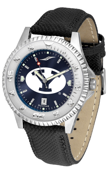 BRIGHAM YOUNG COUGARS Competitor Crimson AnoChrome Leather Watch with Colored Bezel (Men's or Women's)