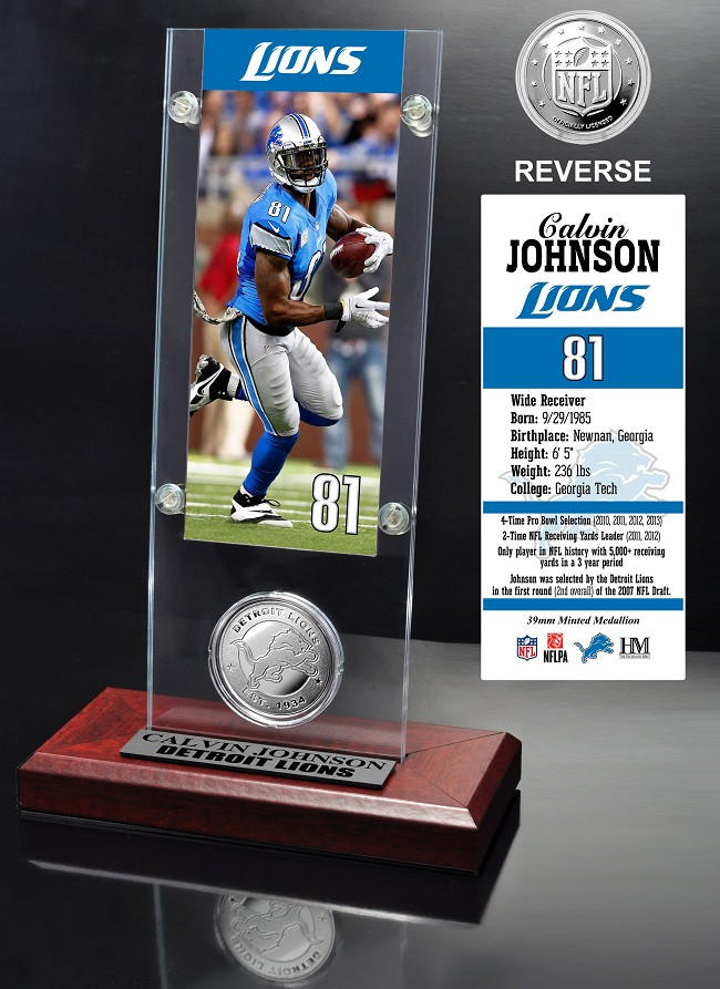 Calvin Johnson Ticket & Minted Coin Acrylic Desk Top