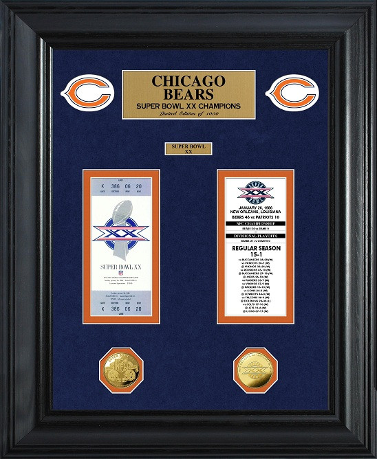 Chicago Bears Super Bowl Ticket and Game Coin Collection Framed
