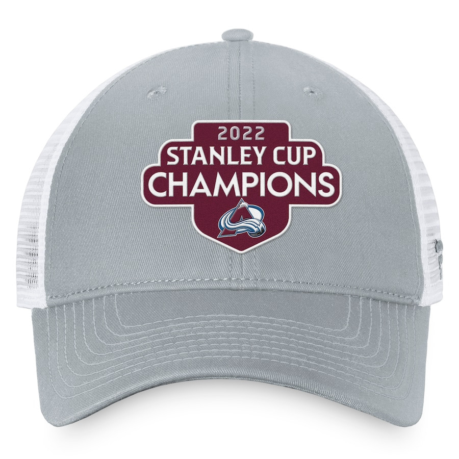 Colorado Avalanche 2022 Stanley Cup Champions Locker Room Trucker Adjustable Hat - Gray/White