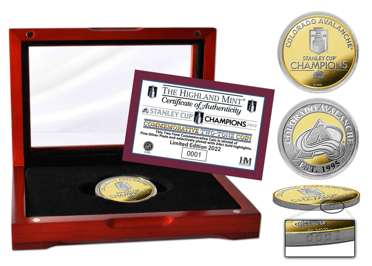 Colorado Avalanche 2022 Stanley Cup Champions Two-Tone Gold and Silver Coin w/Solid Cherry Wood Glass Case LE 5,000