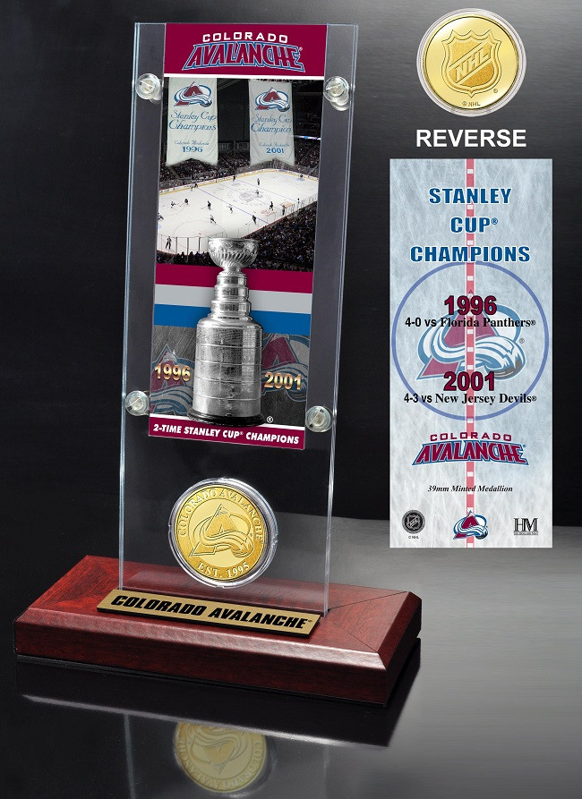 Colorado Avalanche 2x Stanley Cup Champions Ticket and Bronze Coin Acrylic Display