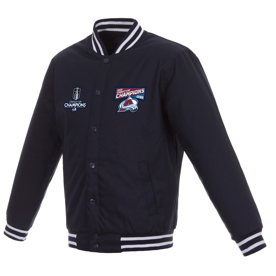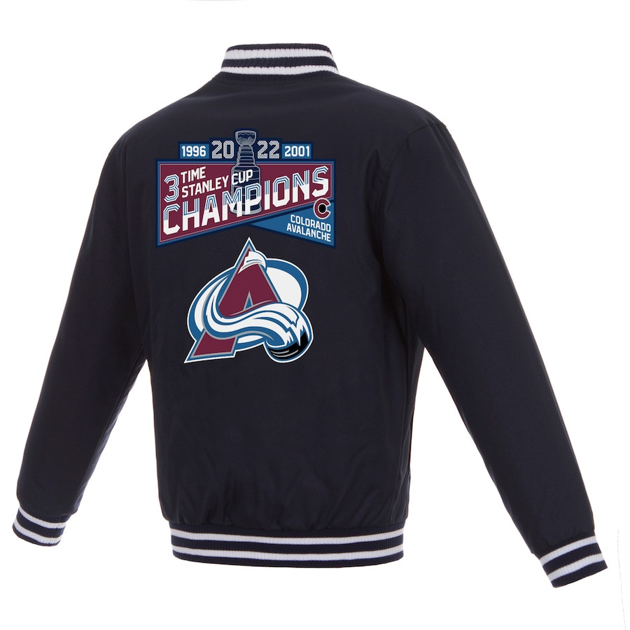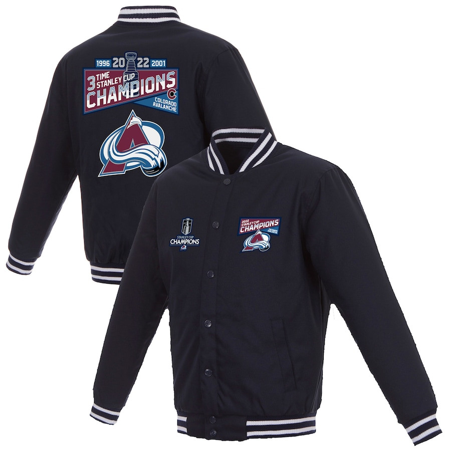Colorado Avalanche 3-Time Stanley Cup Champions Poly-twill Varsity Full-Snap Jacket - Navy