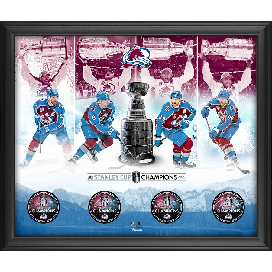 Colorado Avalanche Cale Makar, Gabriel Landeskog, Mikko Rantanen & Nathan MacKinnon Multi-Signed Framed 2022 Stanley Cup Champions Shadowbox with Pucks - Limited Edition of 250
