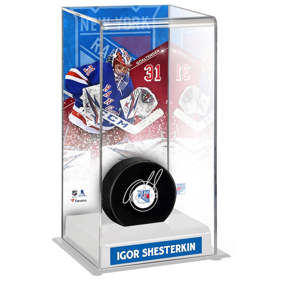 Igor Shesterkin New York Rangers Authentic Autographed Hockey Puck with Deluxe Tall Hockey Puck Case