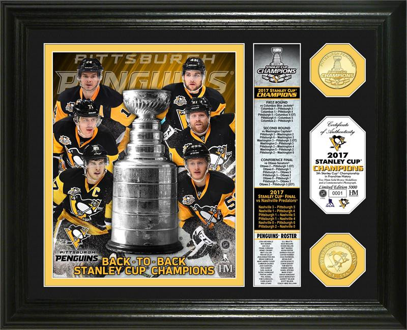 Pittsburgh Penguins 2017 Back to Back Stanley Cup Champions "Banner" 2pc Gold Coin Photo Mint LE 5,000