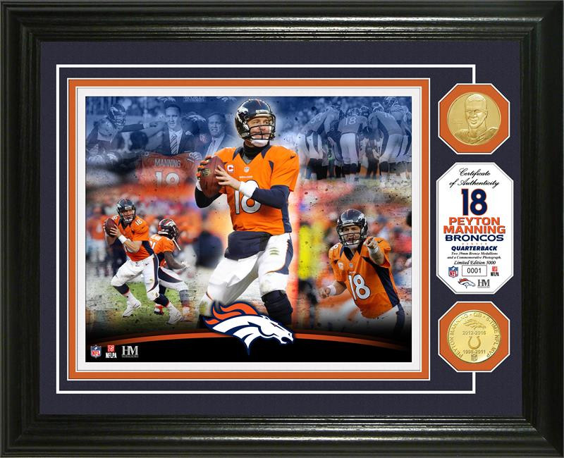 **Denver Broncos Peyton Manning Career 2pc Bronze Coin Photo Mint LE