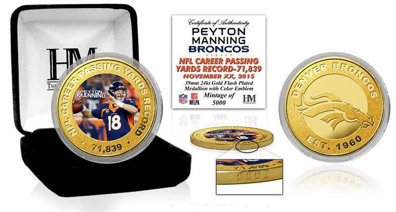 **Denver Broncos Peyton Manning Passing Record Color Coin w/Case