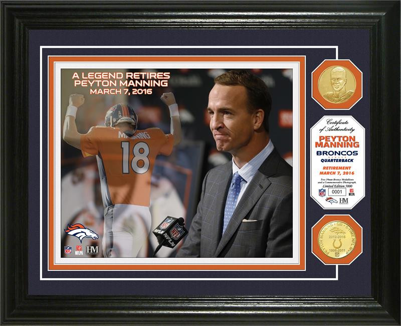 **Denver Broncos Peyton Manning Retirement 2pc Bronze Coin Photo Mint LE