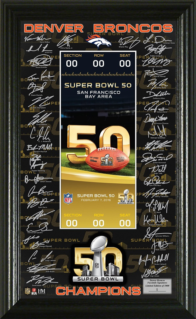 ***Denver Broncos Super Bowl 50 Champions Signature Ticket Framed LE