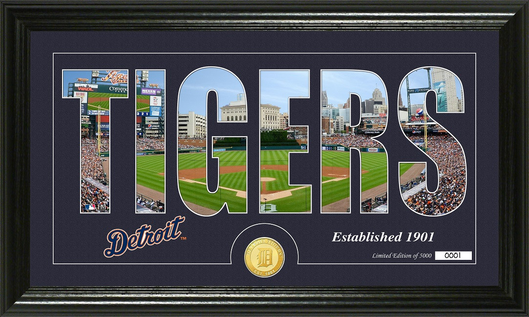 Detroit Tigers Silhouette Bronze Coin Panoramic Photo Mint