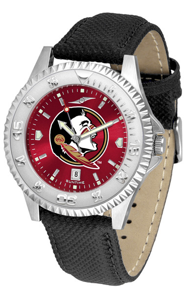 Florida State Seminoles Competitor Leather AnoChrome Leather Watch - Red Dial w/Colored Bezel (Men's or Women's)