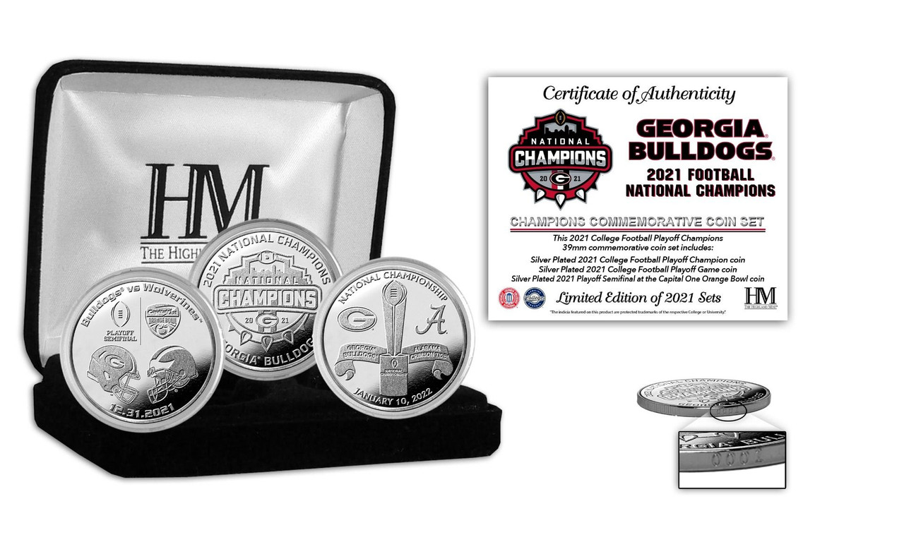 Georgia Bulldogs 2021 National Champions 3pc Silver Coin Set LE 2,021