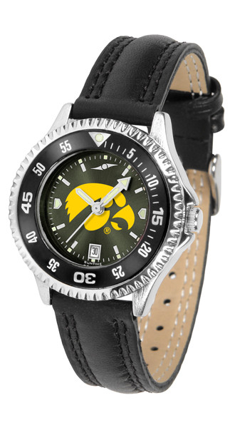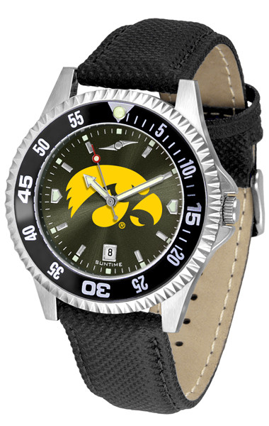 Iowa Hawkeyes Competitor Leather AnoChrome Leather Watch - Red Dial w/Colored Bezel (Men's or Women's)