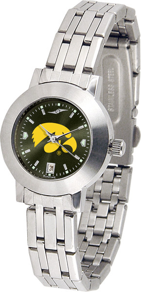 Iowa Hawkeyes Ladies Silver Stainless Steel Dynasty AnoChrome - White Red Dial