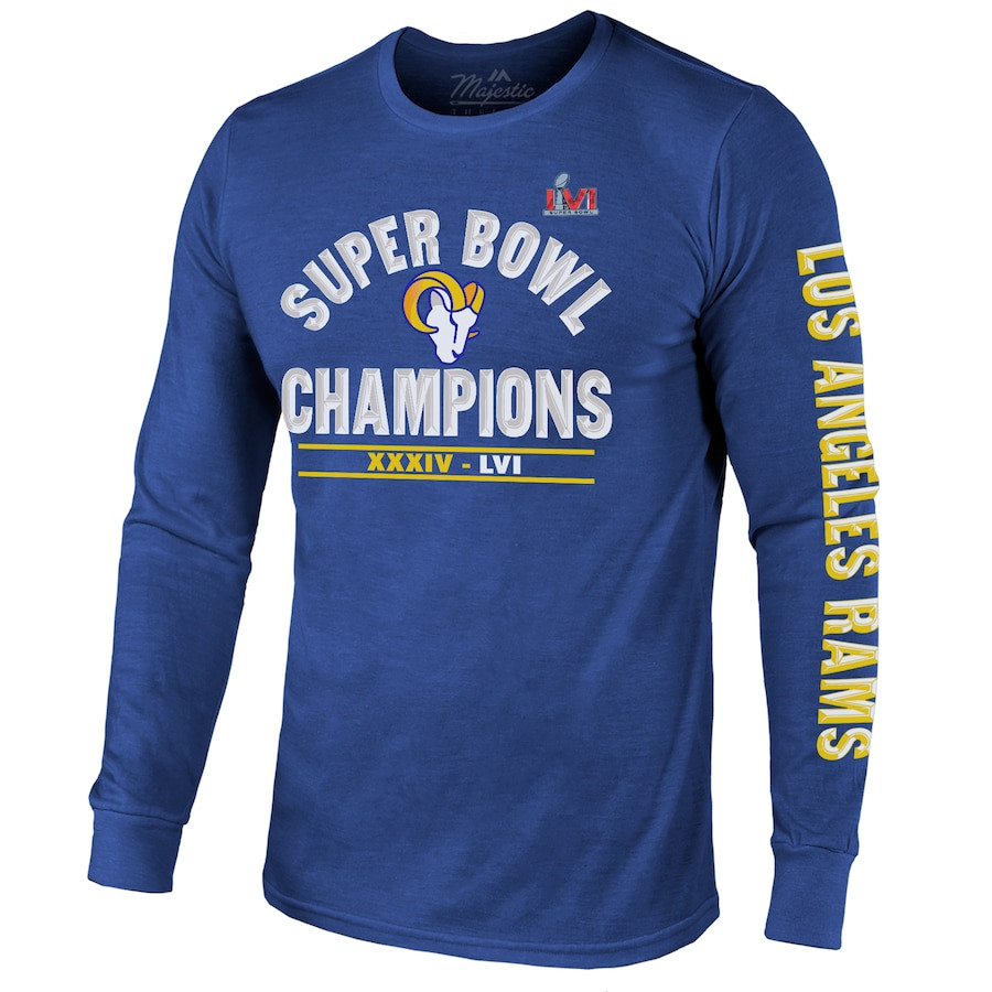 Los Angeles Rams Majestic Threads 2-Time Super Bowl Champions Always Champs Tri-Blend Long Sleeve T-Shirt - Royal