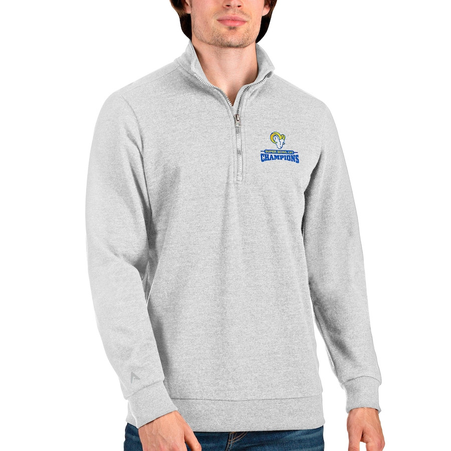 Los Angeles Rams Super Bowl LVI Champions Quarter-Zip Pullover Sweatshirt - Heathered Gray