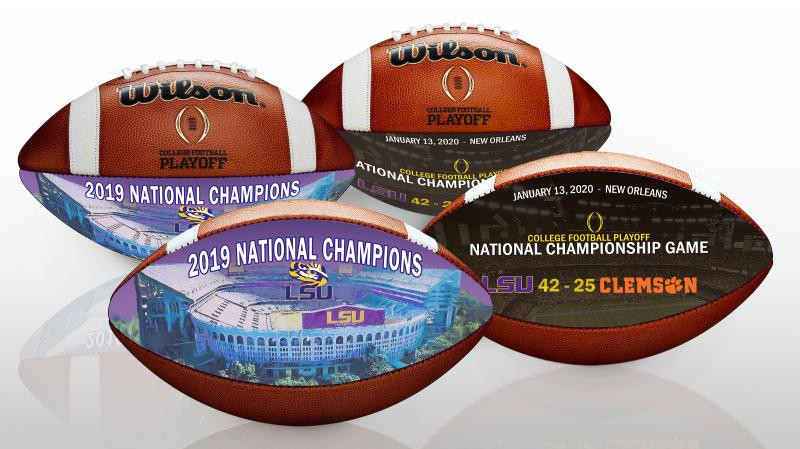 LSU Tigers 2019 CFP National Champions Wilson Leather 2 Commemorative Football Set LE 5,000