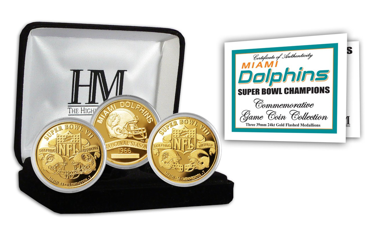 Miami Dolphins 2-time Super Bowl Champions Gold Game Coin Set