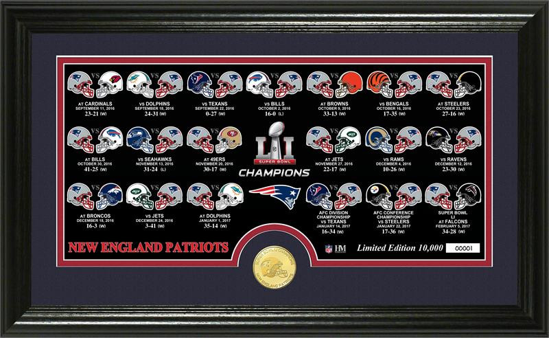 New England Patriots 2016 Super Bowl LI Champions Bronze Pano Coin Photo Mint w/Season Scores Framed LE 10,000