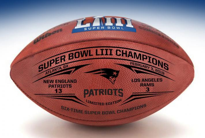 New England Patriots Super Bowl LIII Wilson Leather Football Laser Engraved LE 1,000