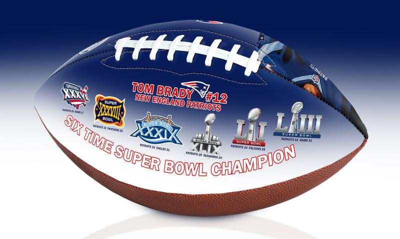 New England Patriots Tom Brady 6X Super Bowl Championship Portrait Art Football Limited Edition 5,000