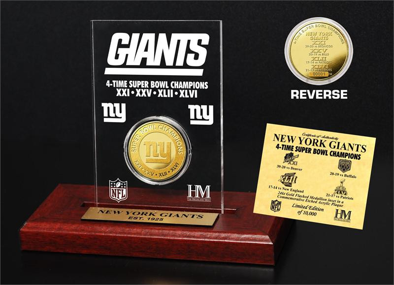 New York Giants 4-Time Champions 24KT Gold Etched Acrylic