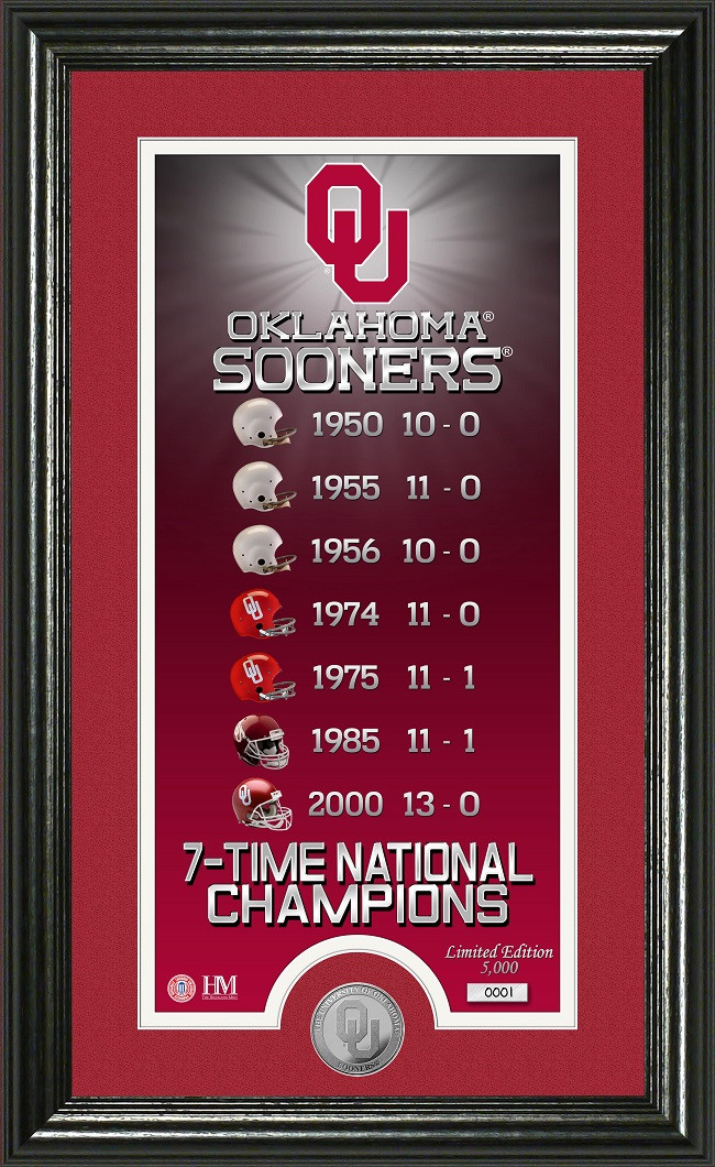 Oklahoma Sooners 7-Time National Championship Legacy Supreme Silver Coin Panoramic Photo Mint LE 5000