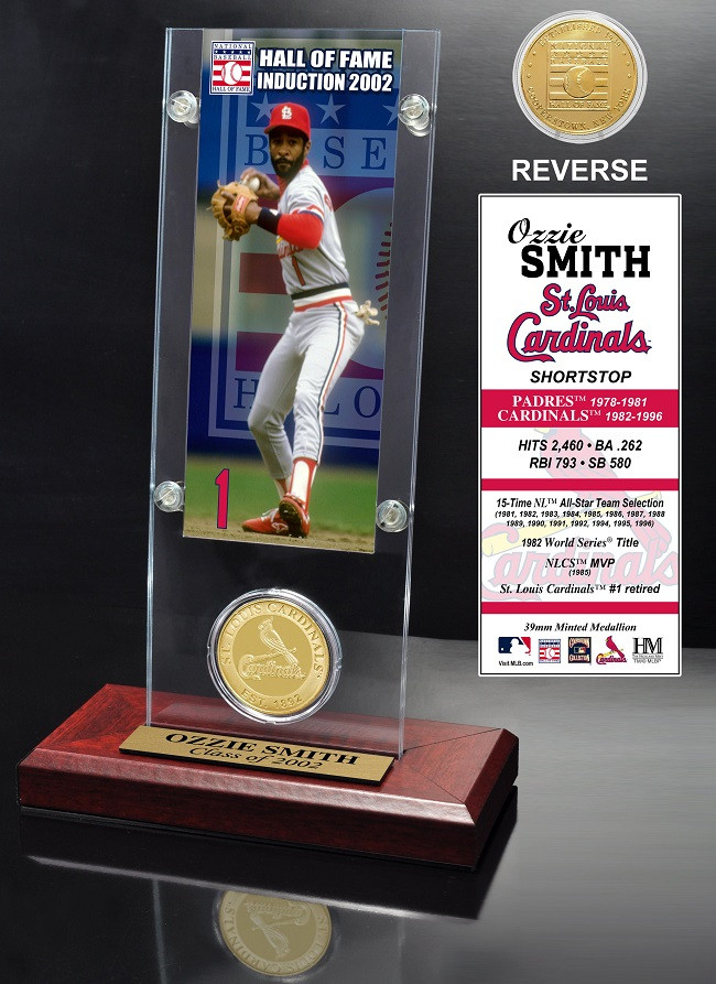 Ozzie Smith Hall of Fame Ticket & Bronze Coin Acrylic Desk Top