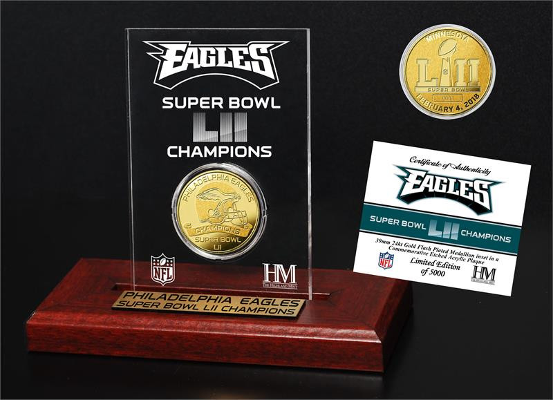 Philadelphia Eagles Super Bowl LII Champions 24k Gold Coin Etched Acrylic Display LE 5,000