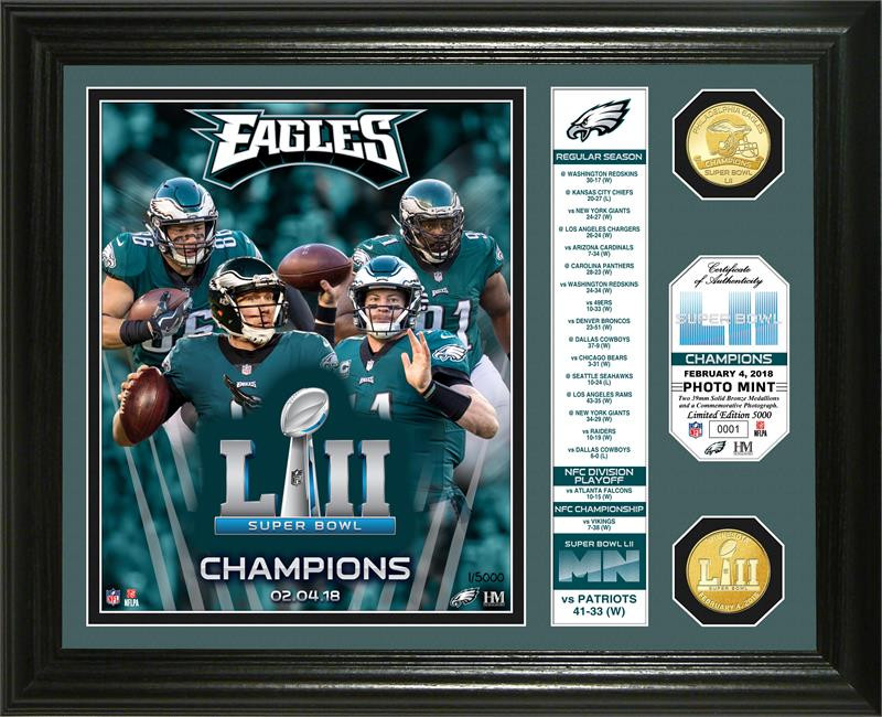 Philadelphia Eagles Super Bowl LII Champions 2pc 24k Gold Coin Banner Photo Mint LE 5,000