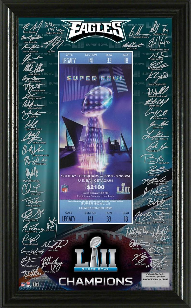 Philadelphia Eagles Super Bowl LII Champions Signature Ticket Framed LE 5,000