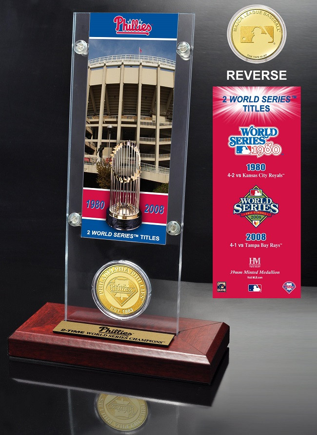 Philadelphia Phillies World Series Ticket & Bronze Coin Acrylic Desk Top