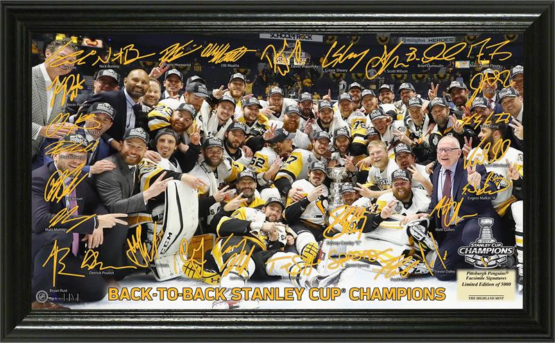 Pittsburgh Penguins Back to Back NHL Stanley Cup Champions Signature Rink Framed LE 5,000