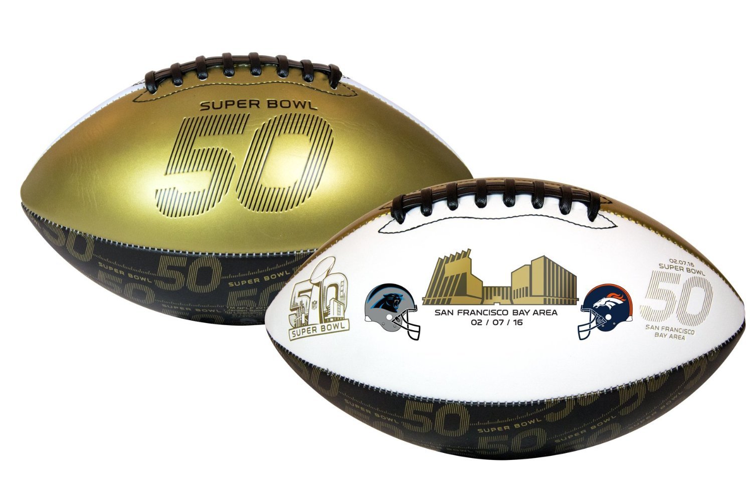 **Super Bowl 50 Full Size Leather Dueling Football - Carolina Panthers vs Denver Broncos