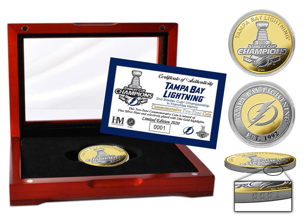 Tampa Bay Lightning 2020 Stanley Cup Final Champions Gold and Silver 2-Tone Coin w/Case LE 2,020