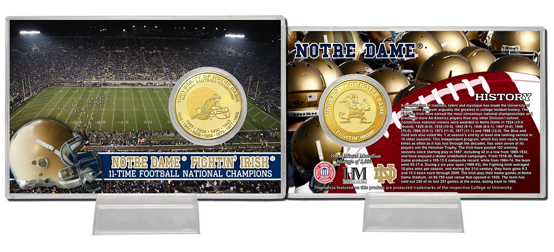 University of Notre Dame 11-Time National Champions Bronze Coin Card