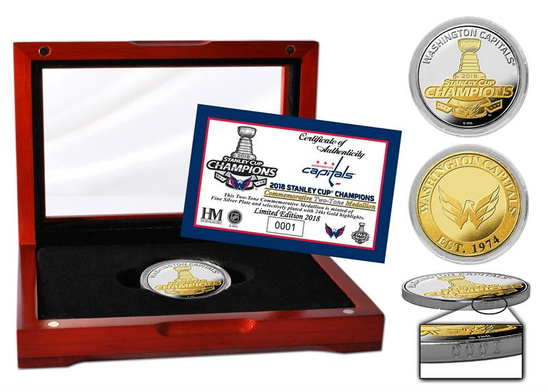 Washington Capitals 2018 NHL Stanley Cup Champions 2-Tone Gold and Silver Coin w/Solid Cherry Wood Case LE 2,018