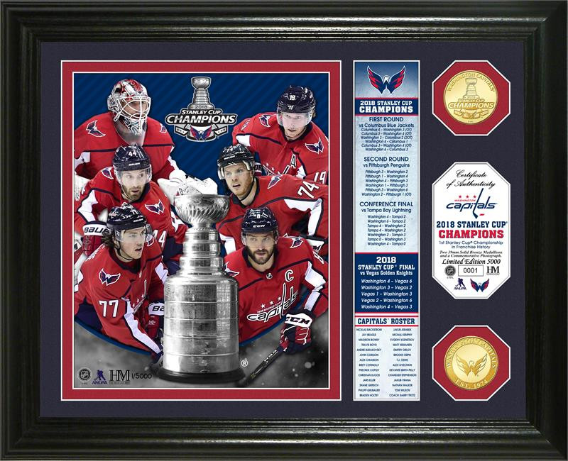 Washington Capitals 2018 NHL Stanley Cup Champions 2pc Gold Coin Banner Photo Mint LE 5,000