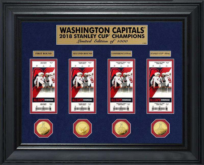 Washington Capitals 2018 NHL Stanley Cup Champions Deluxe 4pc Gold Coin & 4pc Ticket Collection LE 1,000