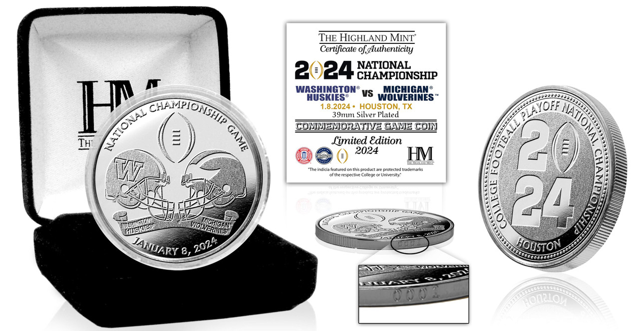 Washington Huskies vs Michigan Wolverines 2024 CFP National Championship Silver Coin w/Case LE 2,024